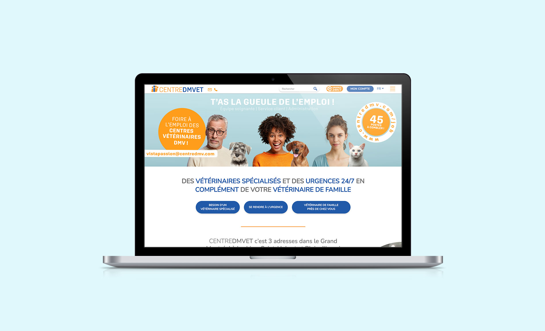 La hiérarchie des contenus a été repensée pour faciliter la lecture et guider les visiteurs vers les informations essentielles, notamment les adresses de leurs différentes cliniques et les soins d’urgence.