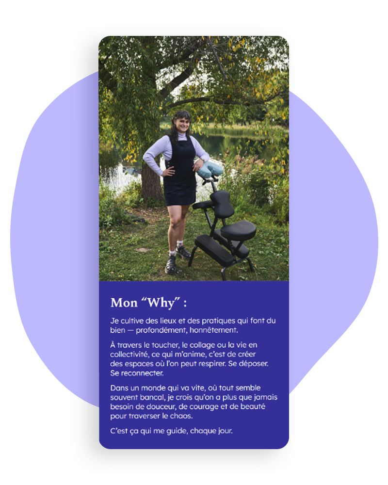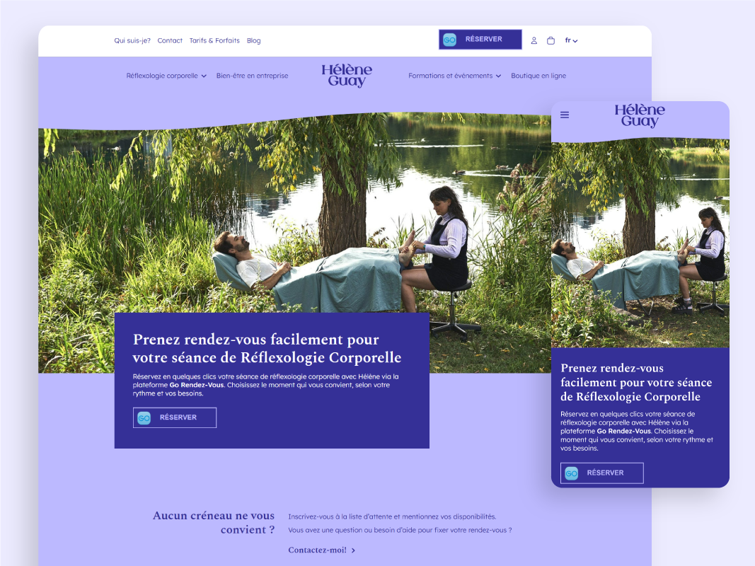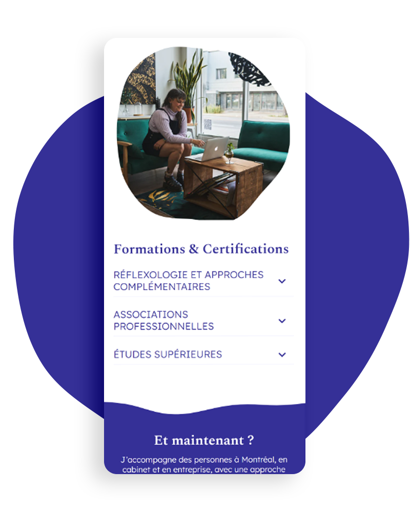 Réflexologue et artiste collagiste au Québec, Hélène souhaitait un site qui lui ressemble vraiment. Si elle avait déjà tenté de le construire sur WordPress, le manque de temps et de simplicité rendait sa gestion complexe et peu adaptée à son quotidien.