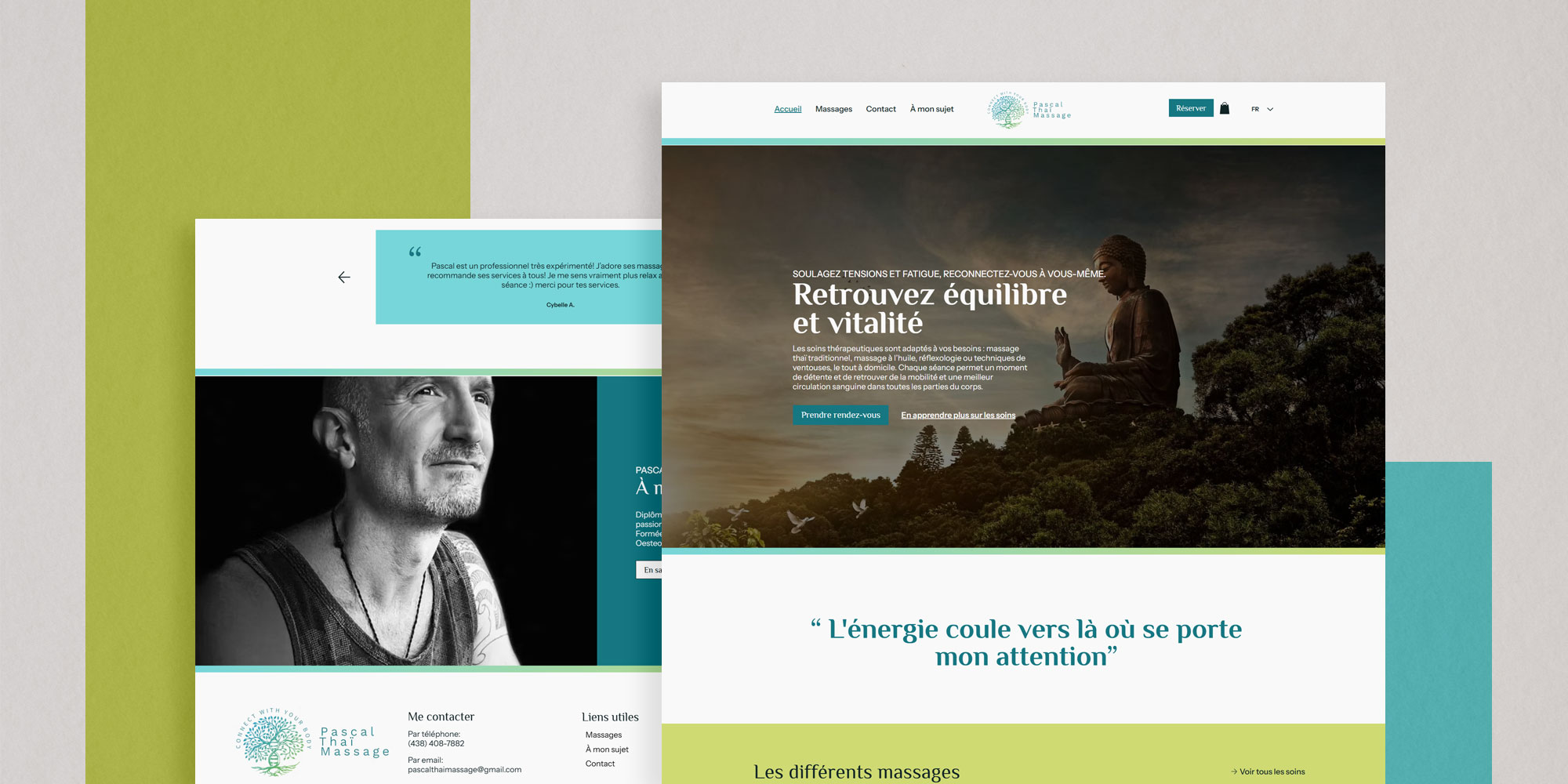 Massothérapeute basé à Montréal, Pascal souhaitait valoriser son expertise et simplifier la réservation pour ses clients de ses soins à domicile. Nous avons refondu son site WordPress en Wix, optimisé le design, le contenu SEO et la prise de rendez-vous en ligne, pour un site cohérent, responsive et plus engageant pour ses clients.
