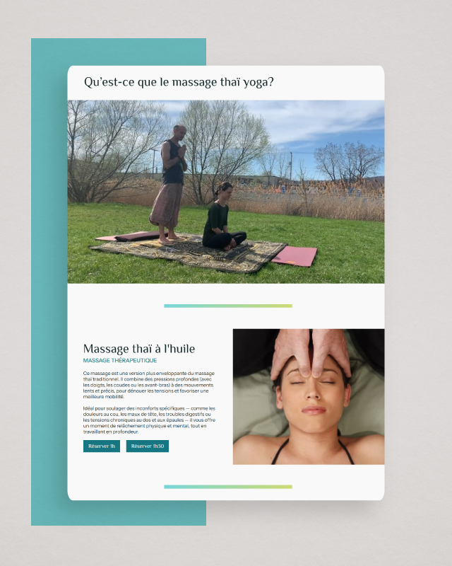 Refonte du contenu pour valoriser les compétences de Pascal, enrichir les informations sur ses massages et améliorer le référencement afin d’attirer davantage de clients locaux.